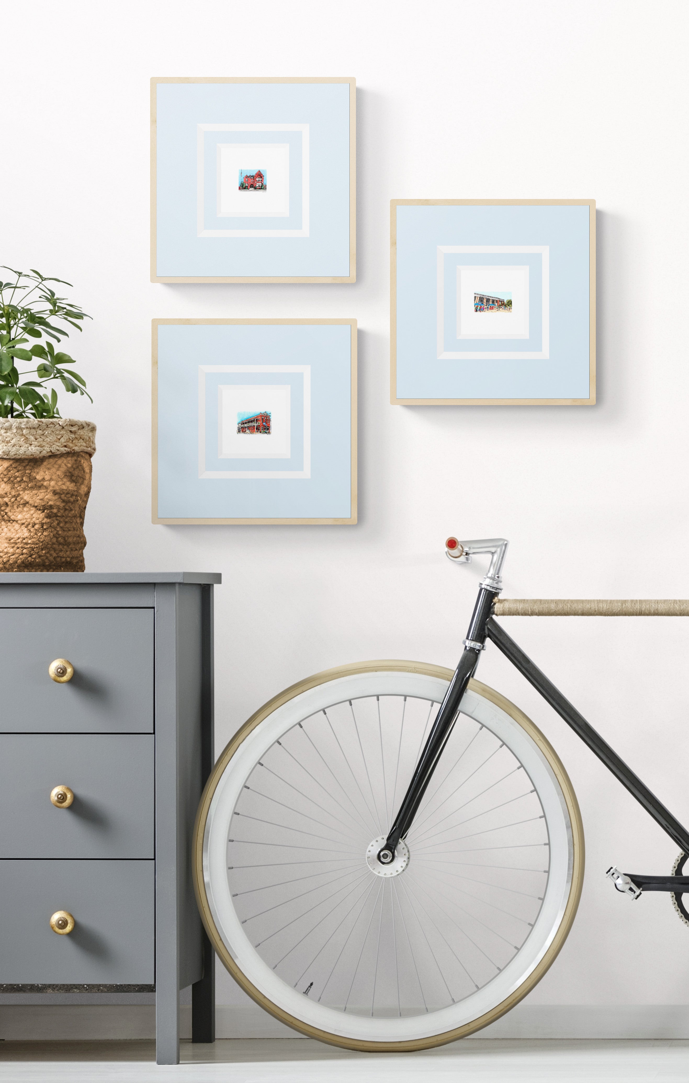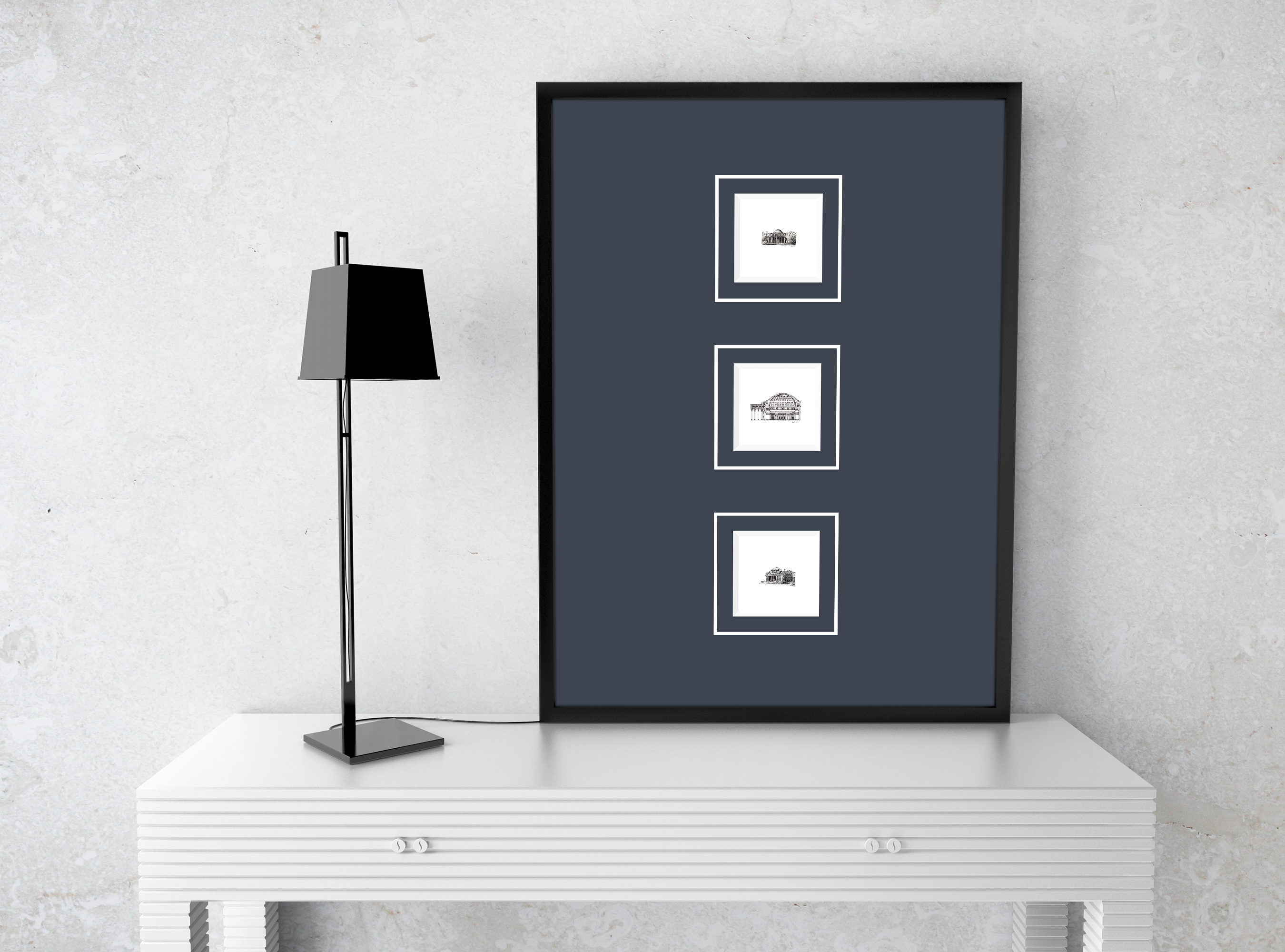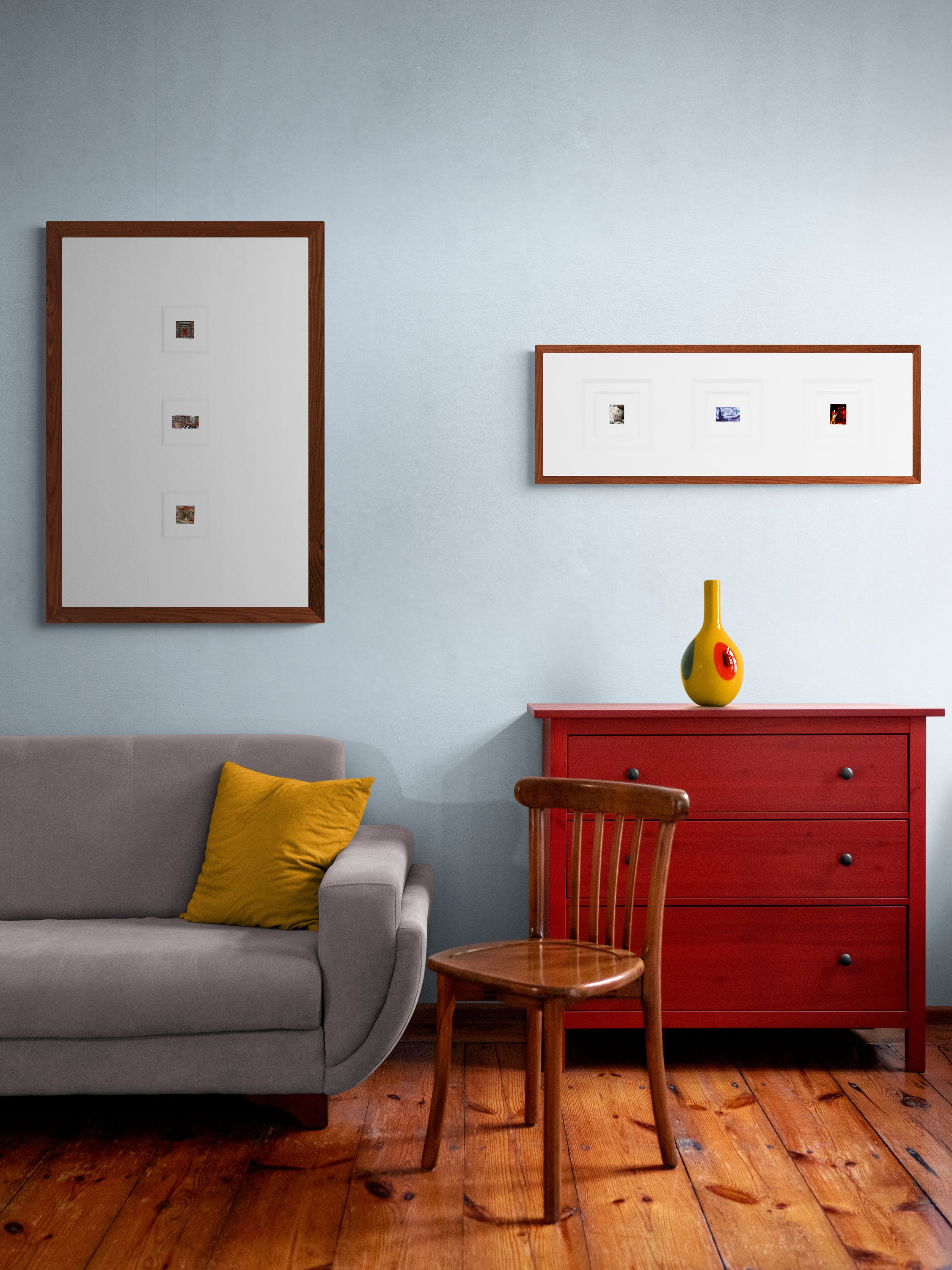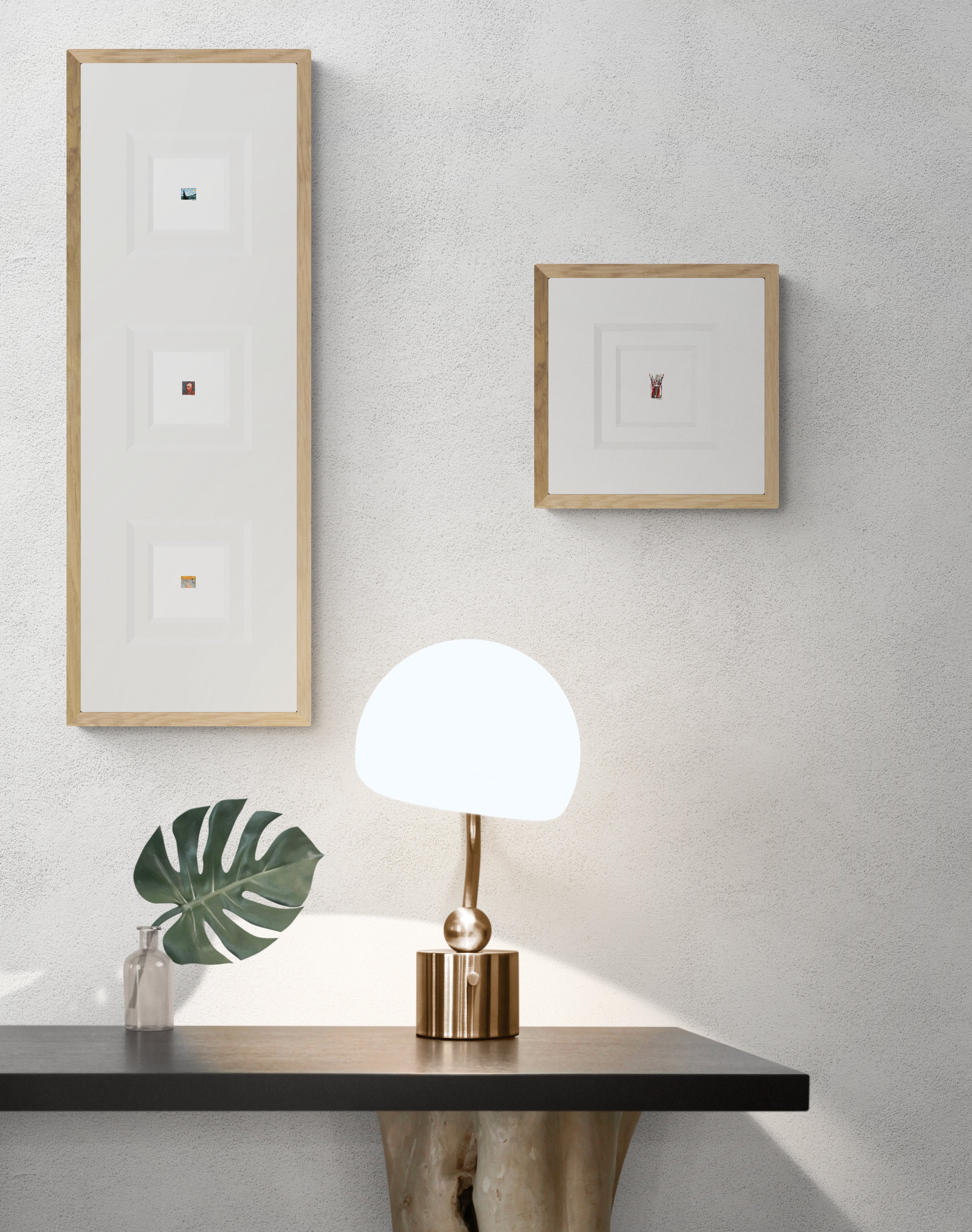 One of the unique qualities of small art is its flexibility to fit into any space; however, the benefits extend far beyond accommodating space constraints. Thoughtfully framed miniatures can enhance a crisp, contemporary aesthetic while producing a more open, spacious look. From collage framing in large mats to offset matting of individual pieces, the display possibilities are endless.