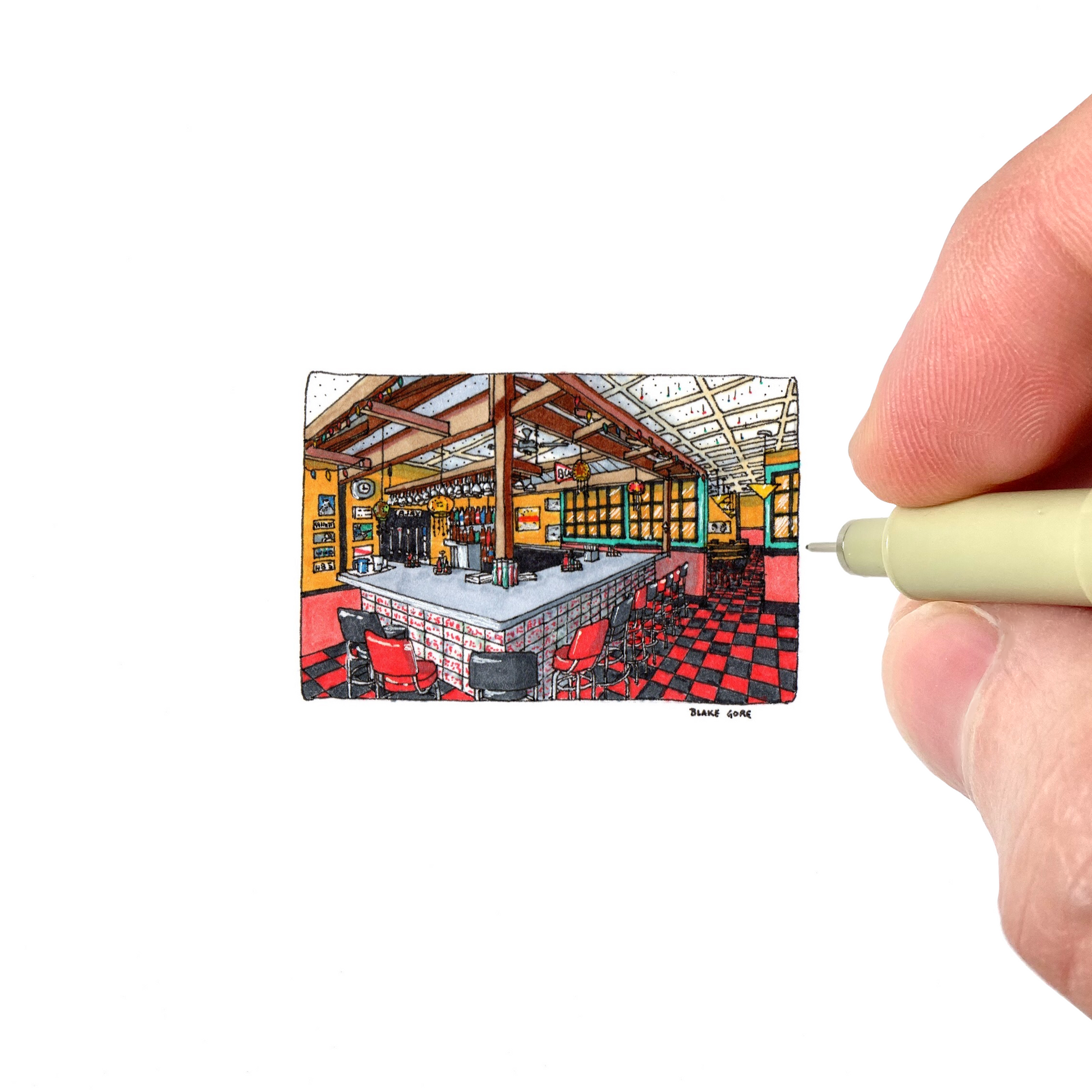 This giclee print of Blake Gore’s original artwork is reproduced at its original miniature scale using archival ink on acid-free, neutral white, matte fine art paper (230g, 9.5-mil). The art arrives ready for 4 x 4 inch framing.