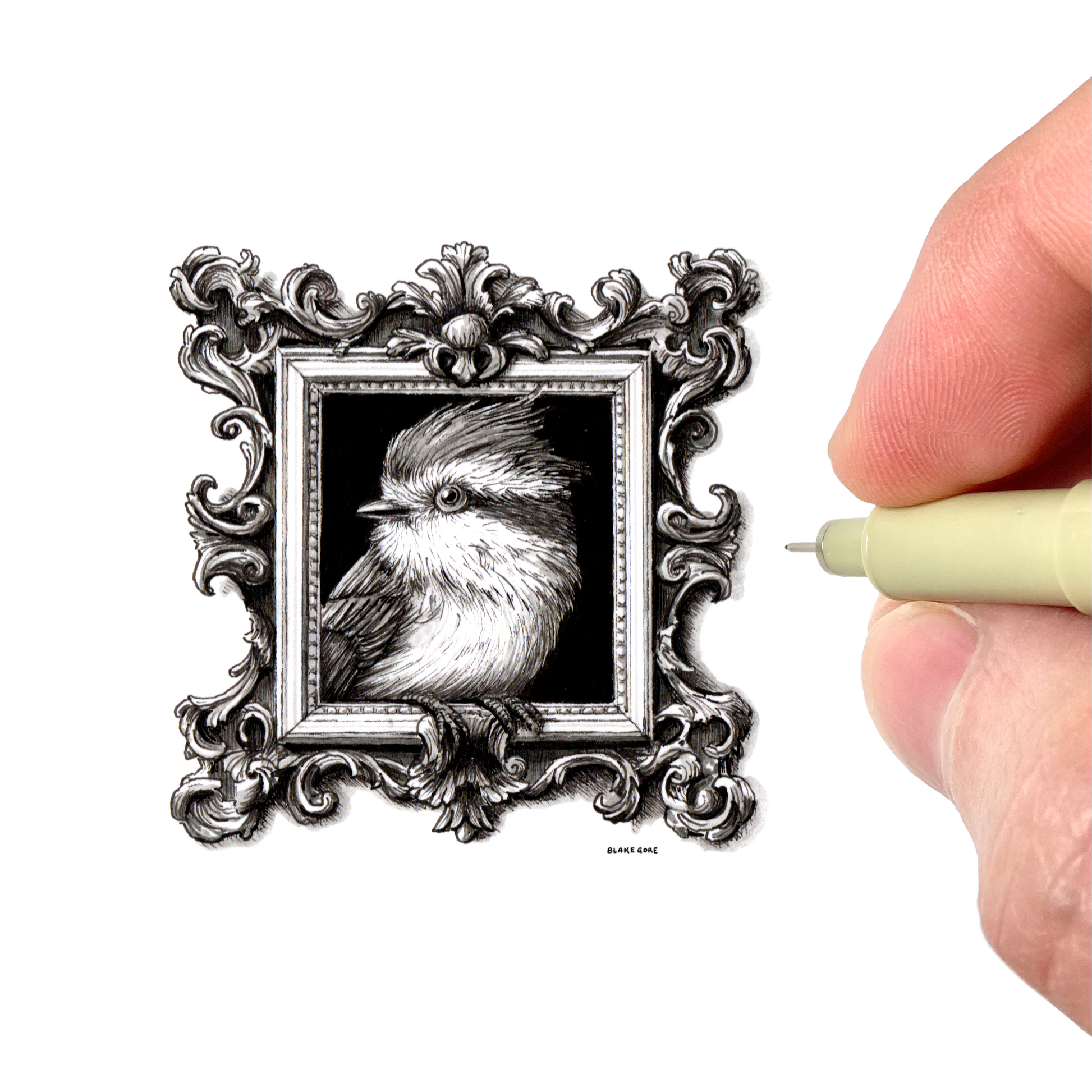 This giclee print of Blake Gore’s original artwork is reproduced at its original miniature scale using archival ink on acid-free, neutral white, matte fine art paper (230g, 9.5-mil). The art arrives ready for 4 x 4 inch framing.