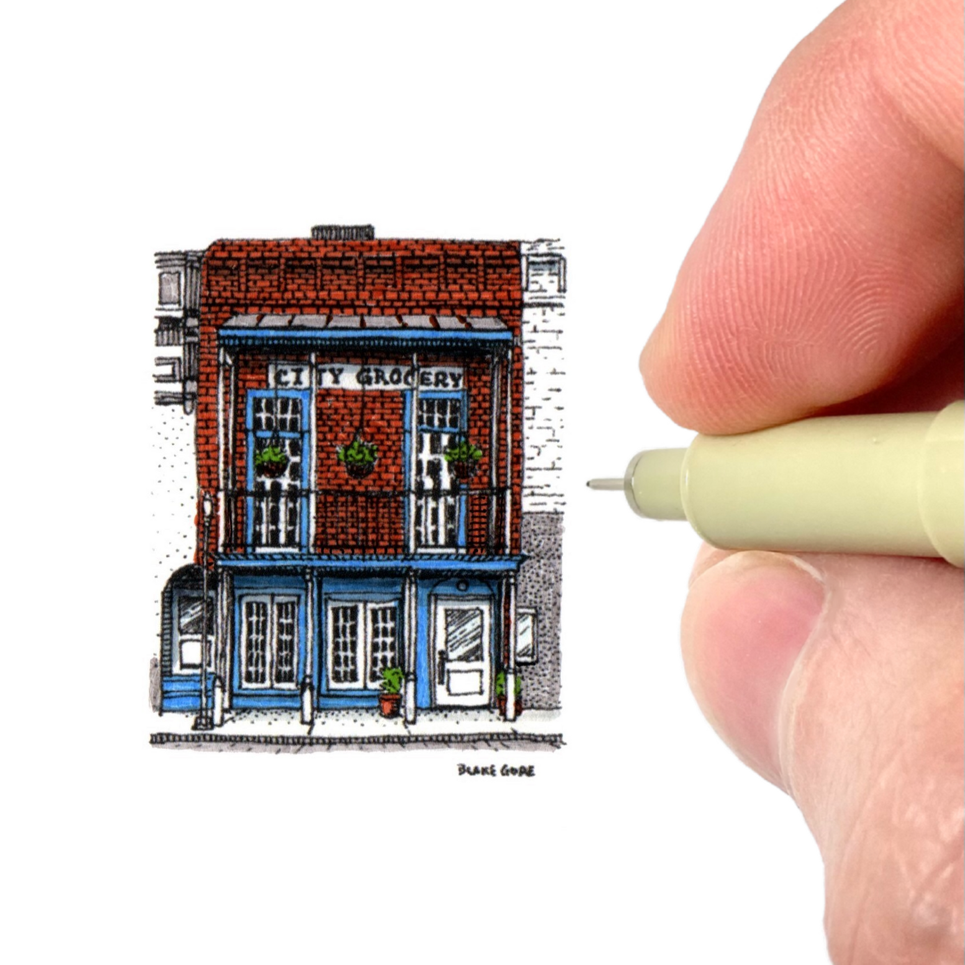 This giclee print of Blake Gore’s original artwork is reproduced at its original miniature scale using archival ink on acid-free, neutral white, matte fine art paper (230g, 9.5-mil). The art arrives ready for 4 x 4 inch framing.
