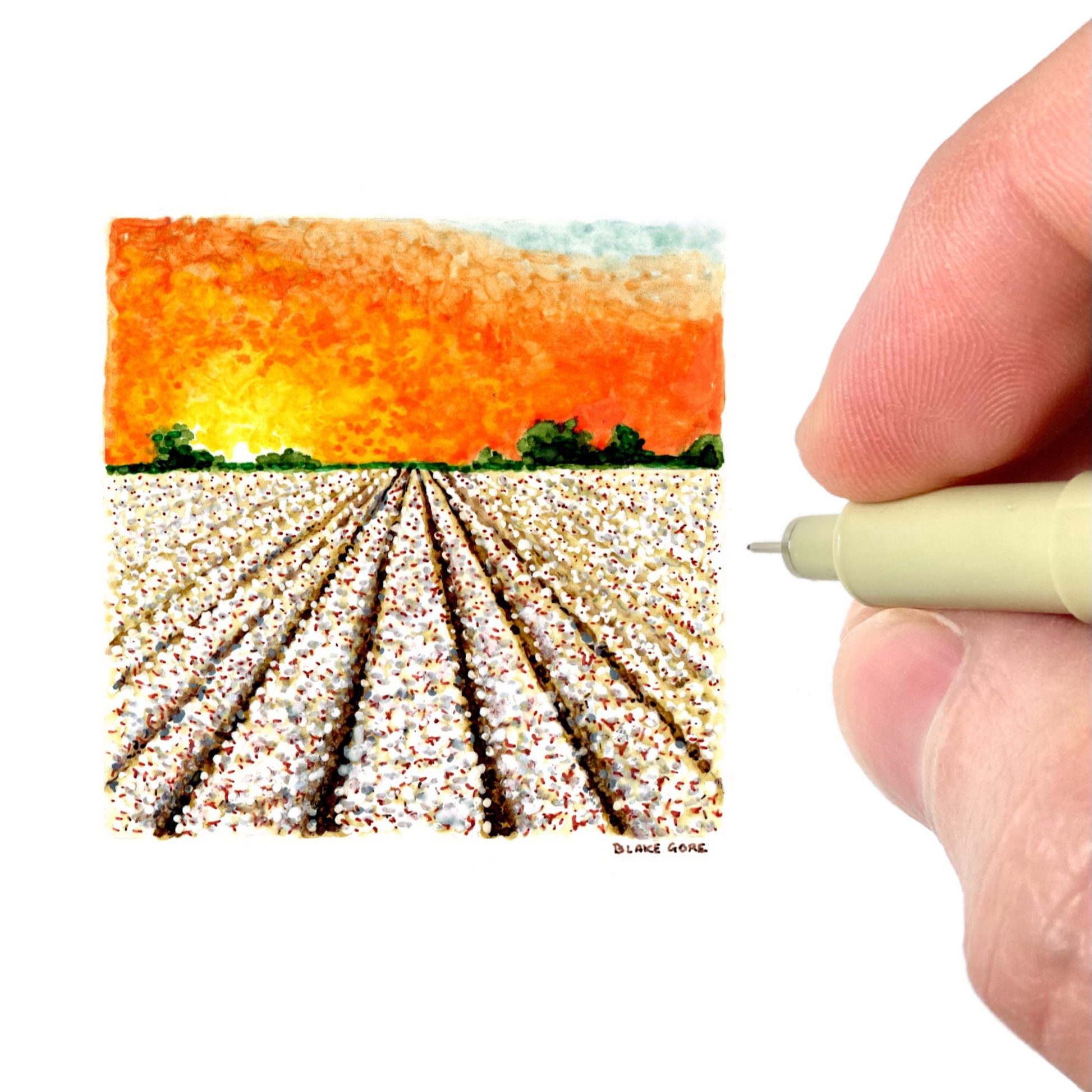 This giclee print of Blake Gore’s original artwork is reproduced at its original miniature scale using archival ink on acid-free, neutral white, matte fine art paper (230g, 9.5-mil). The art arrives ready for 4 x 4 inch framing.