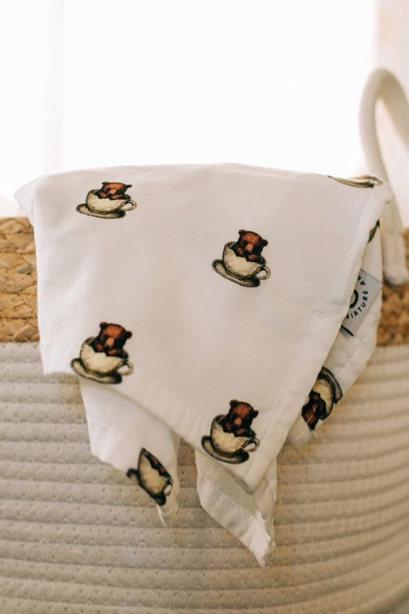 This snuggle-ready baby blanket features a favorite from the Teacup Zoo Collection.