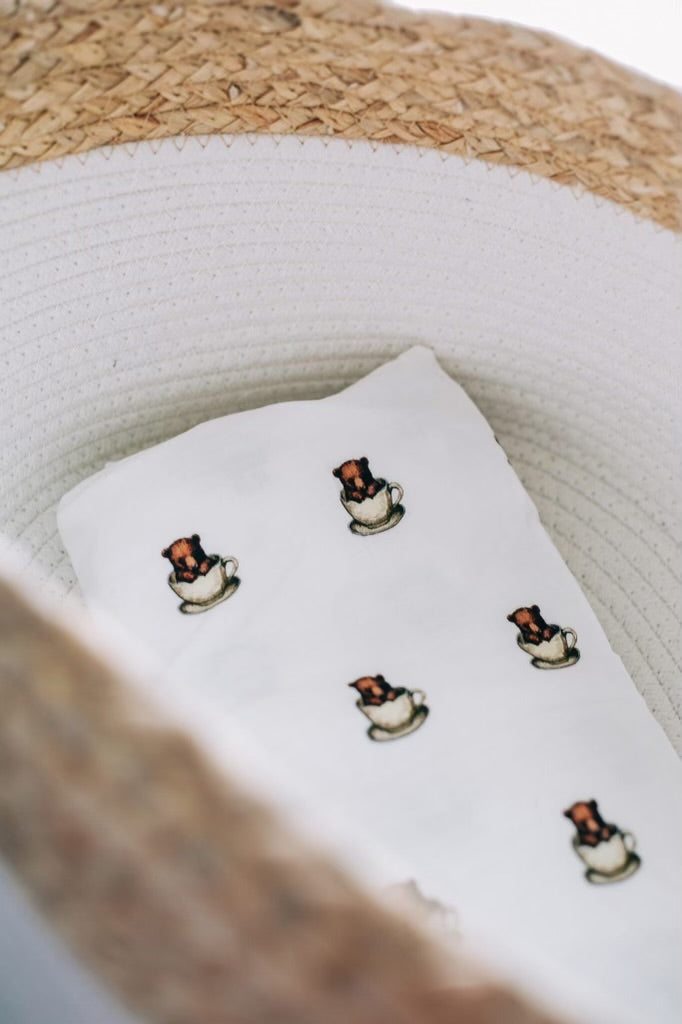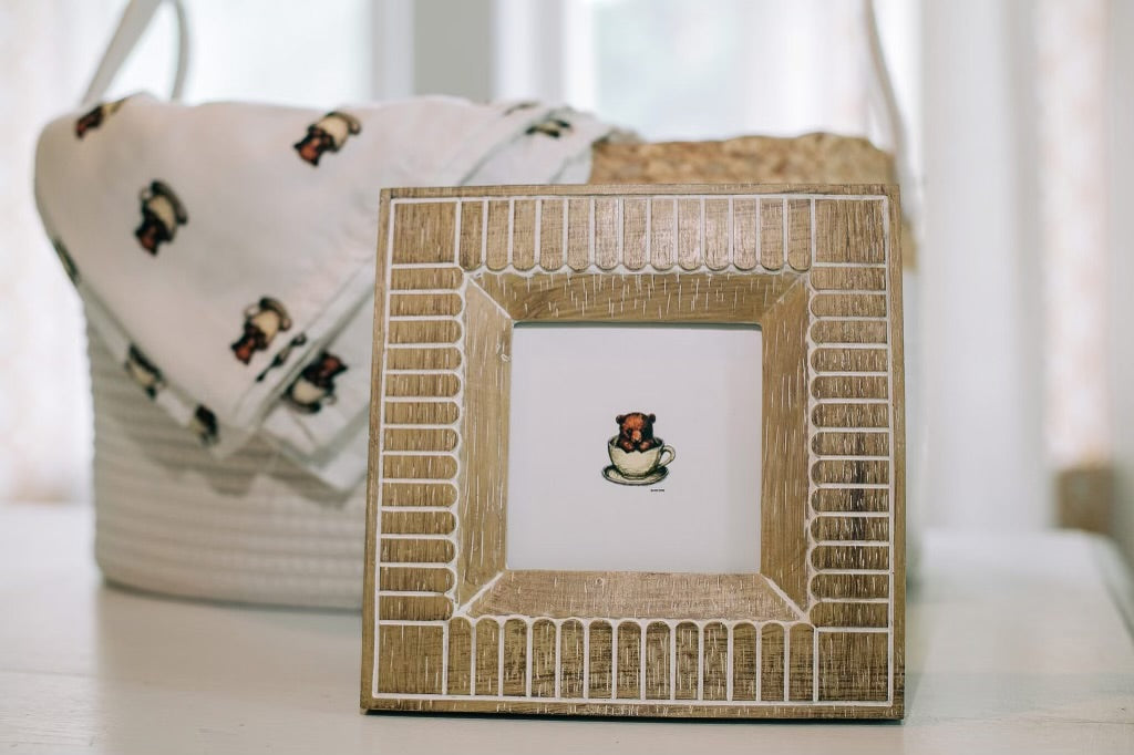 Teacup Bear Blanket and fine art print, ready to frame and display in the nursery or gift box.