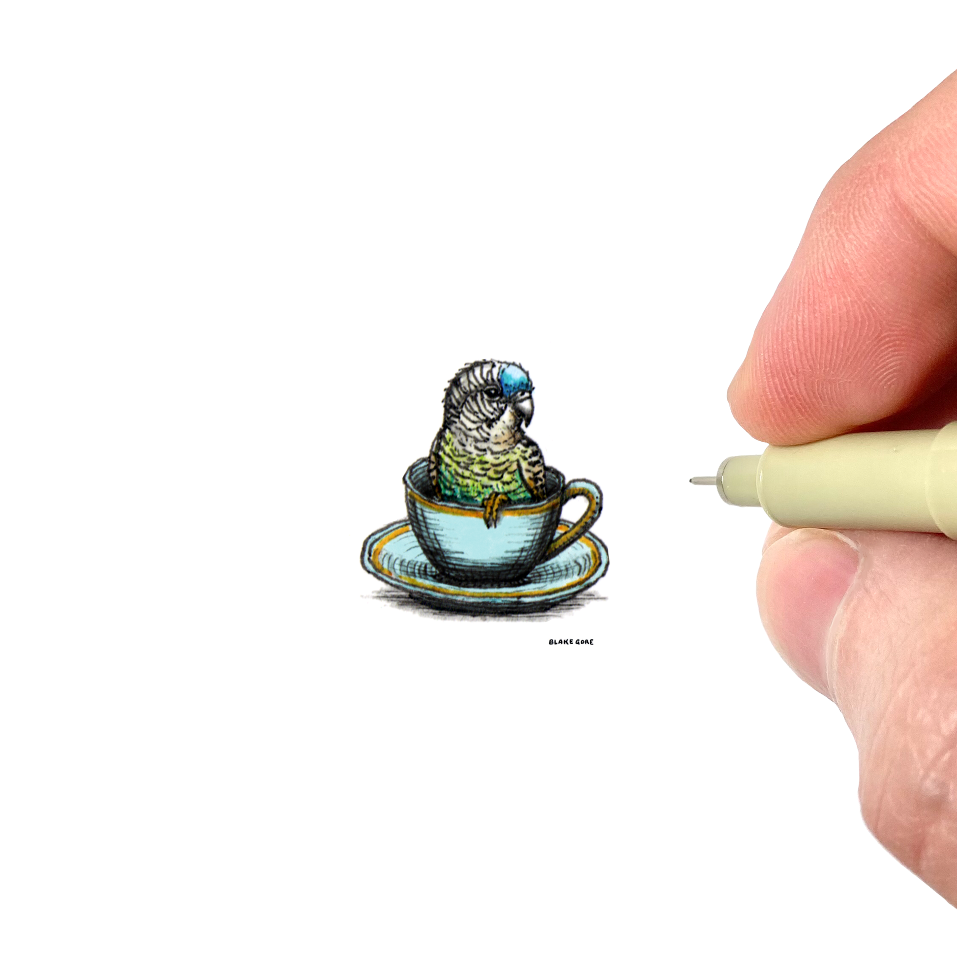 This giclee print of Blake Gore’s original artwork is reproduced at its original miniature scale using archival ink on acid-free, neutral white, matte fine art paper (230g, 9.5-mil). The art arrives ready for 4 x 4 inch framing.