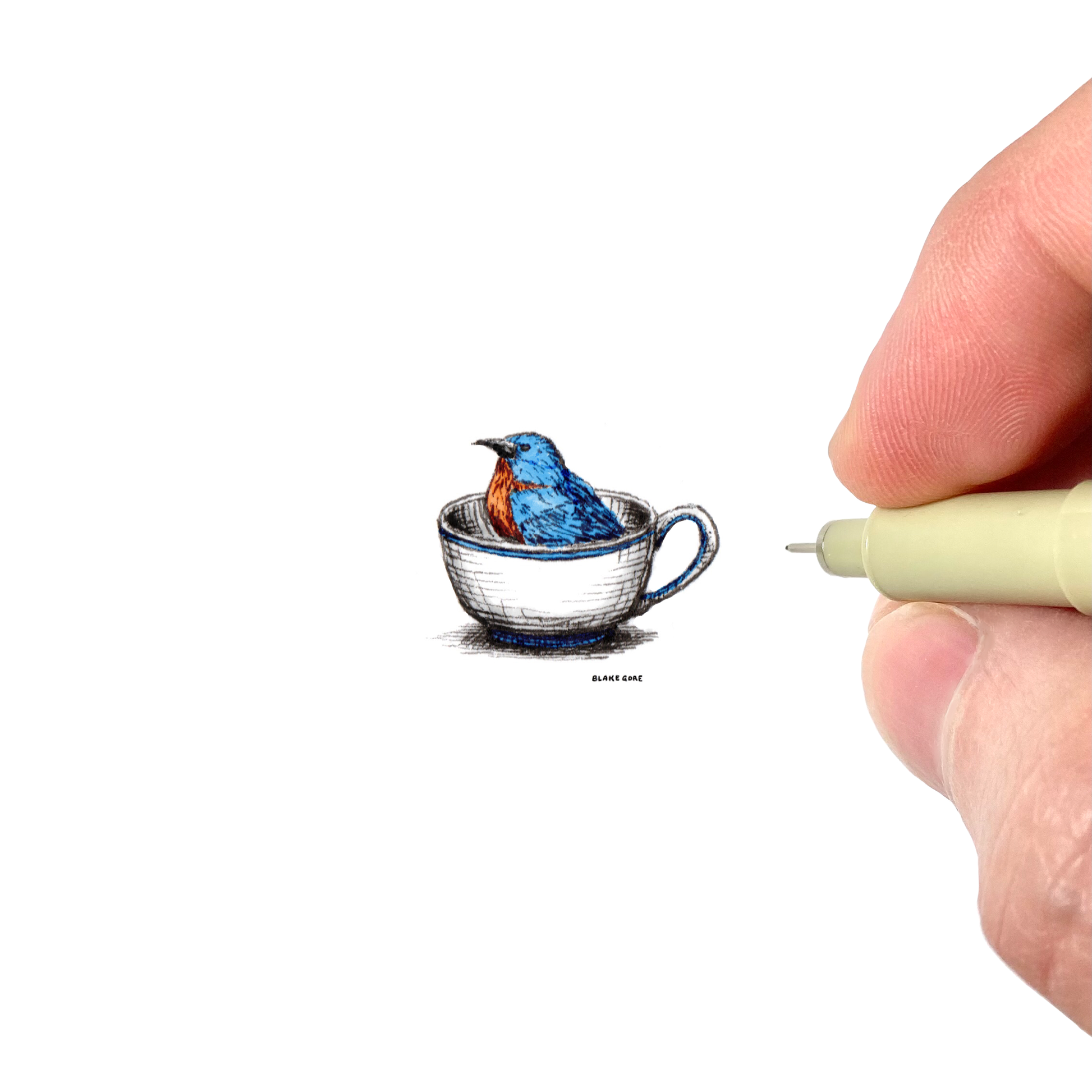 This giclee print of Blake Gore’s original artwork is reproduced at its original miniature scale using archival ink on acid-free, neutral white, matte fine art paper (230g, 9.5-mil). The art arrives ready for 4 x 4 inch framing.
