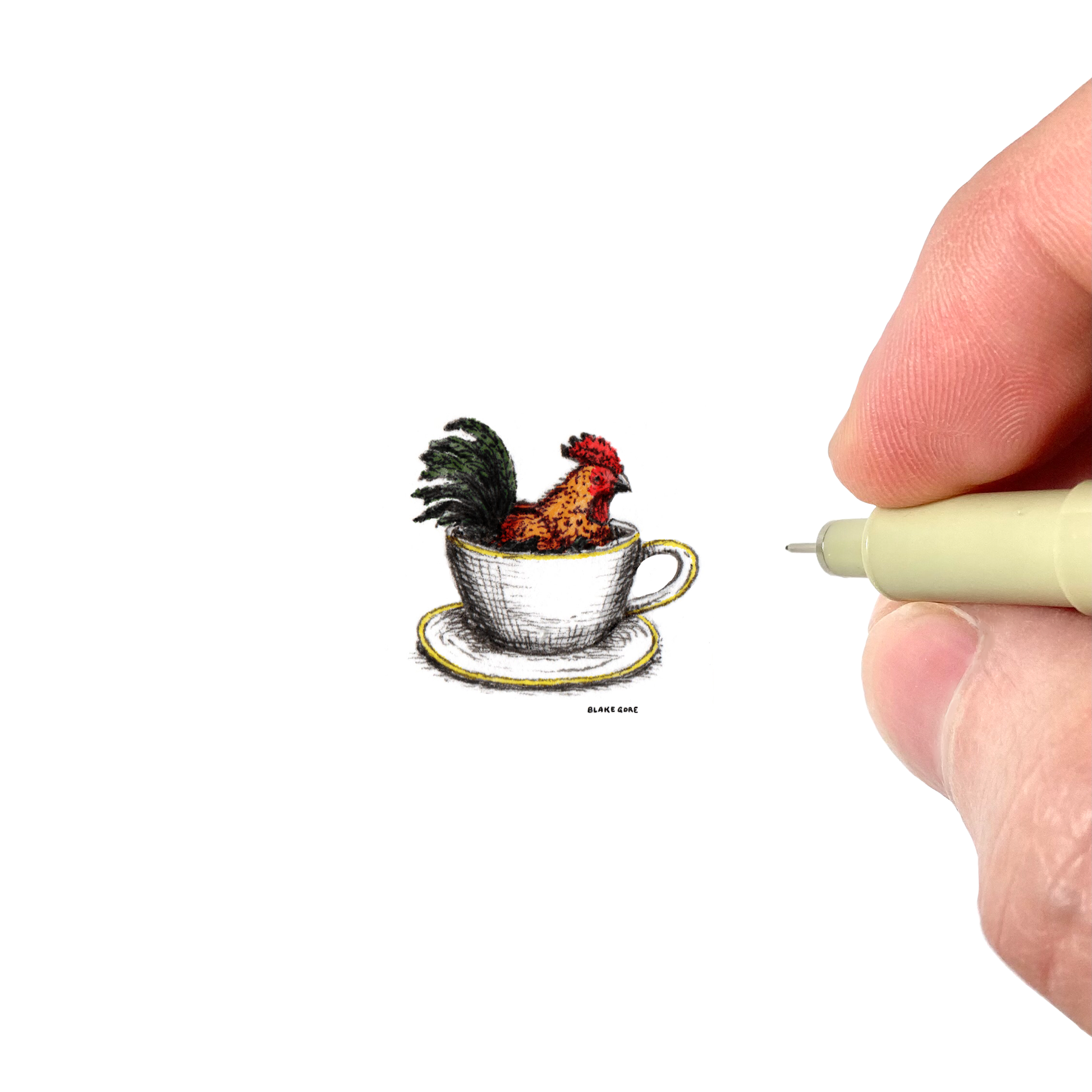 This giclee print of Blake Gore’s original artwork is reproduced at its original miniature scale using archival ink on acid-free, neutral white, matte fine art paper (230g, 9.5-mil). The art arrives ready for 4 x 4 inch framing.