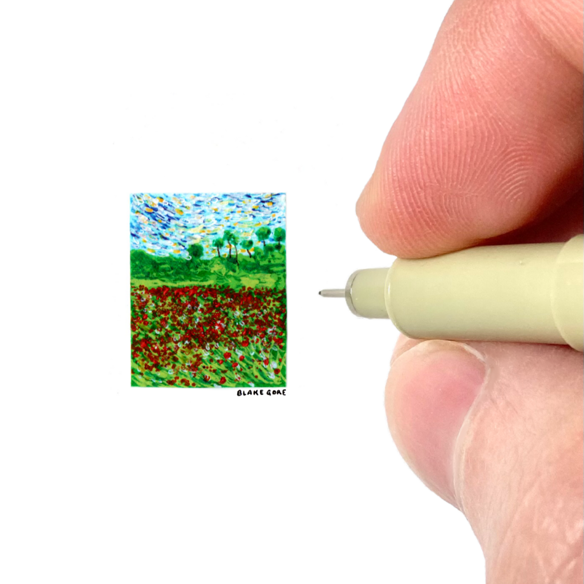 This giclee print of Blake Gore’s original artwork is reproduced at its original miniature scale using archival ink on acid-free, neutral white, matte fine art paper (230g, 9.5-mil). The art arrives ready for 4 x 4 inch framing.